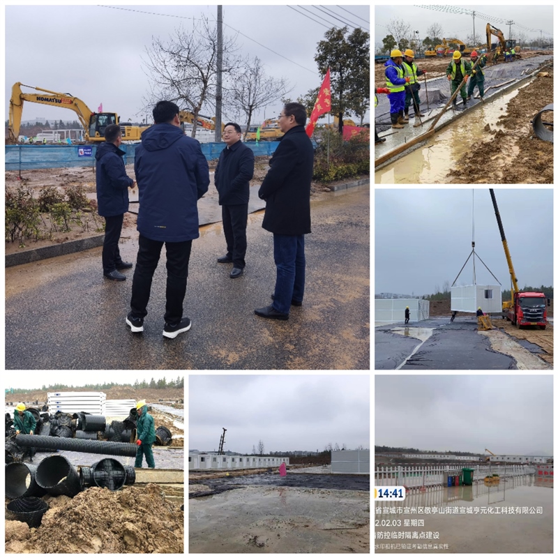 正月初三上午,區(qū)委副書記、區(qū)長俞志剛到宣州區(qū)疫情防控臨時隔離點工地現(xiàn)場督導(dǎo)項目建設(shè),副區(qū)長汪海洋陪同。俞志剛對項目建設(shè)速度給予充分肯定,向春節(jié)期間冒著雨雪天氣加班加點的項目建設(shè)者表示親切的慰問。上午,現(xiàn)場工人正在對路面沉降縫進行切割、對積水較多區(qū)域進行排水,為下一步吊裝工作做好準(zhǔn)備。截止目前,臨時隔離點北邊庫房、醫(yī)護辦公、醫(yī)護宿舍合計36套已吊裝結(jié)束,即將完成22套準(zhǔn)備區(qū)用房吊裝工作。