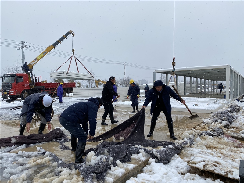 2月7日(農(nóng)歷正月初七),冬雪紛紛、寒風(fēng)瑟瑟,惡劣的天氣并未阻擋隔離點項目各參建單位的激情和干勁。中午12時40許,監(jiān)理單位在現(xiàn)場開展巡查,鰲峰建設(shè)在項目部組織施工會商工作。下午,國資集團黨員突擊隊、志愿服務(wù)隊主動請“戰(zhàn)”,步履匆匆赴現(xiàn)場鏟雪除冰。副區(qū)長王劍赴現(xiàn)場督查指導(dǎo)工作并對項目進度表示肯定。